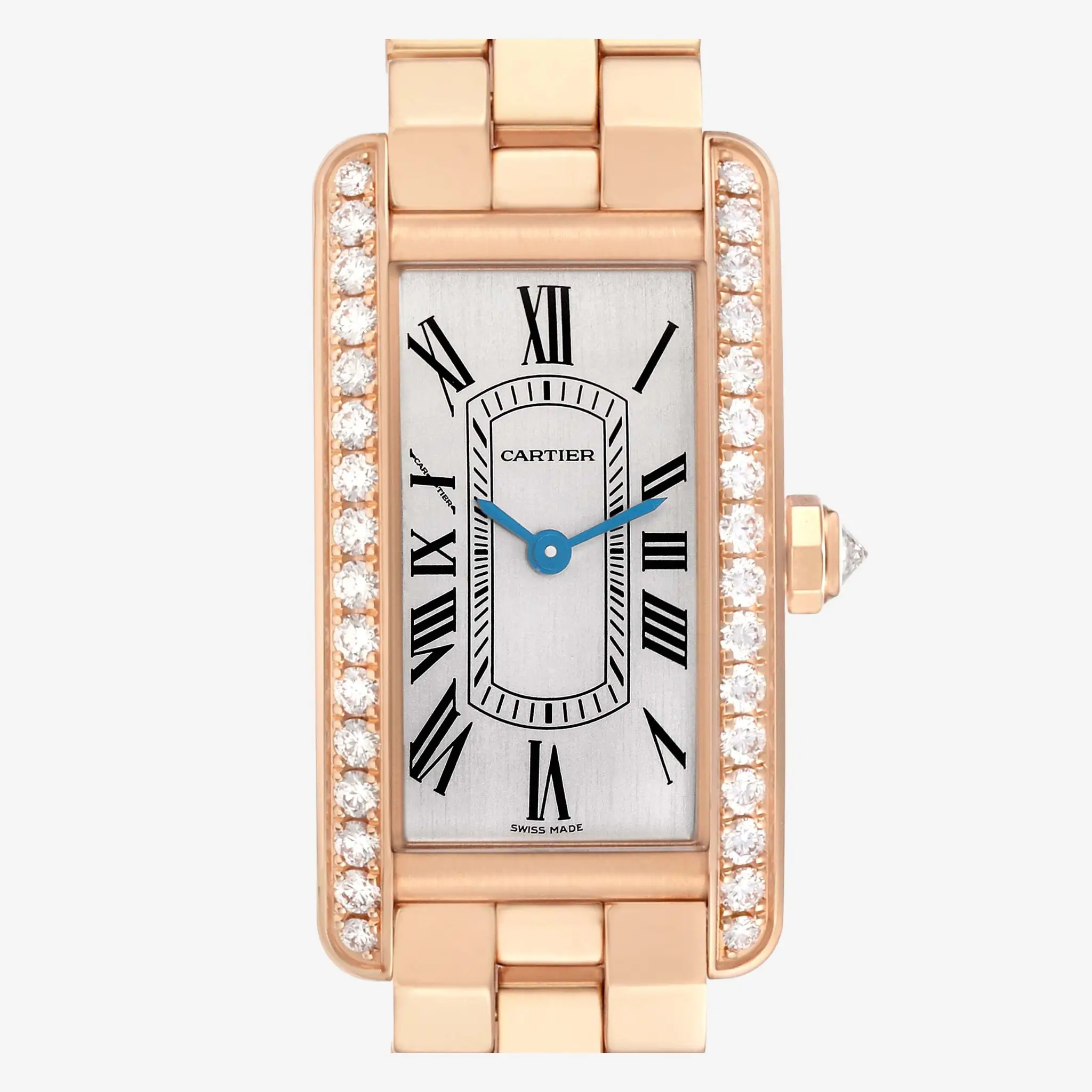 | Bezel: | Original Cartier factory diamond bezel. 33 brilliant-cut diamonds totalling 0.96 carats. |