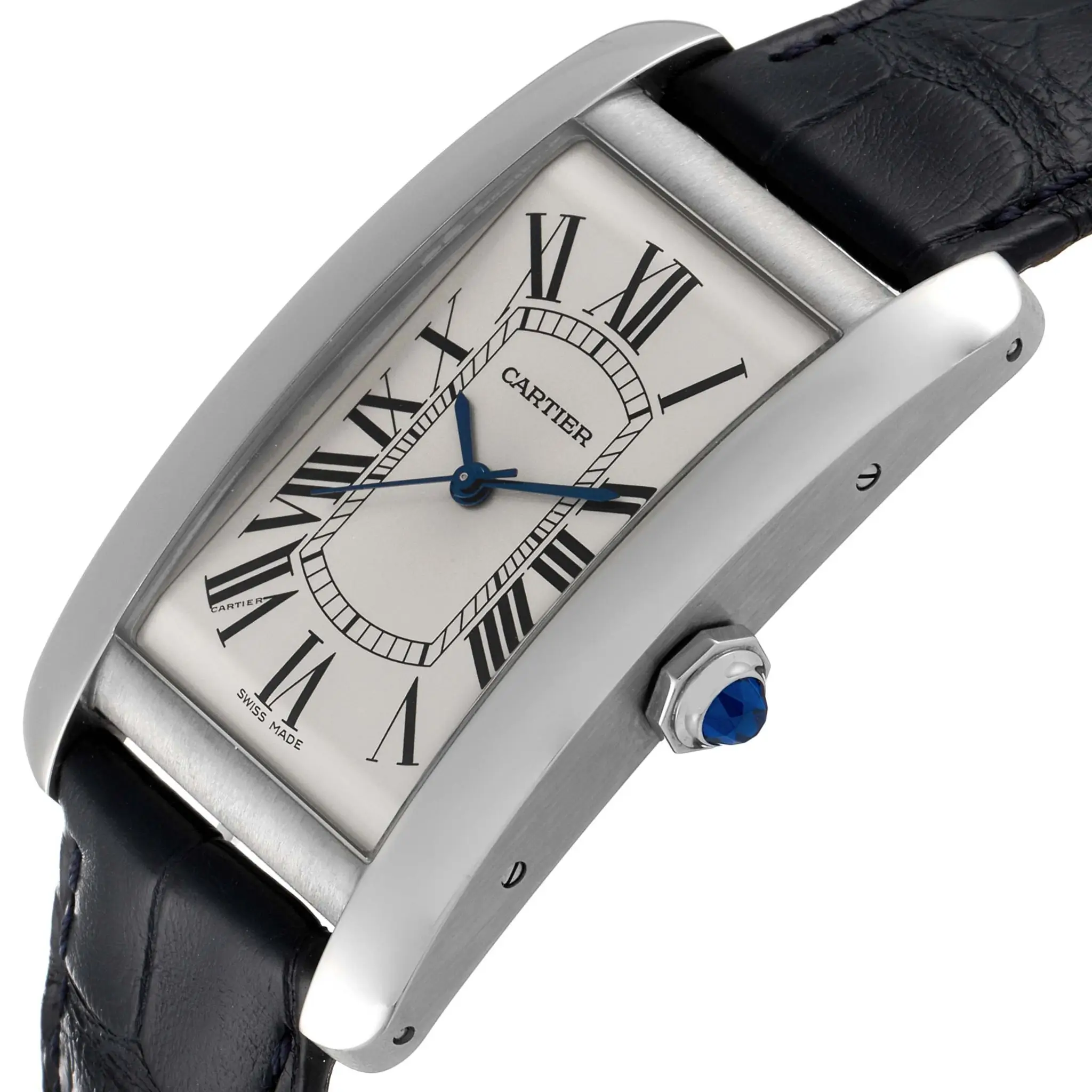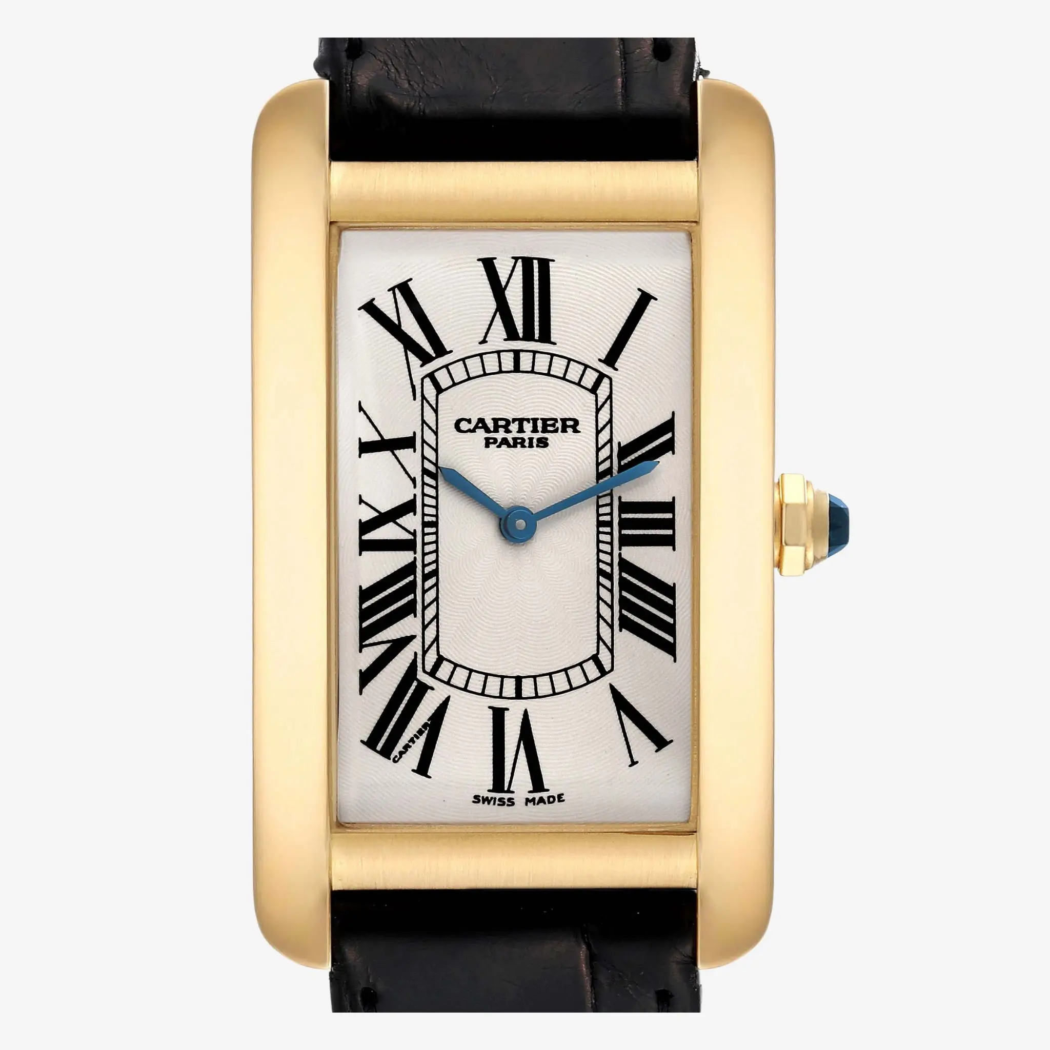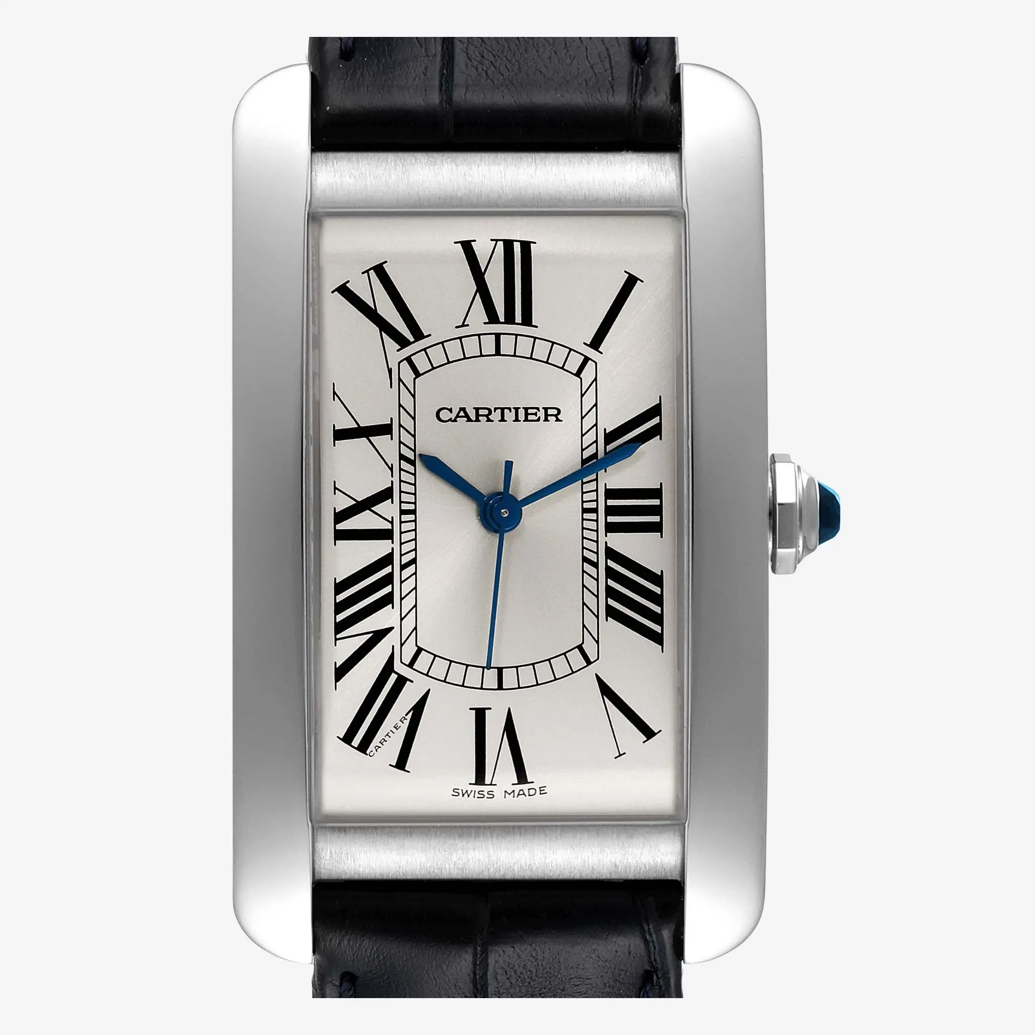 | Dial | Silver guilloche dial with black Roman numerals. Secret Cartier signature at VII. |