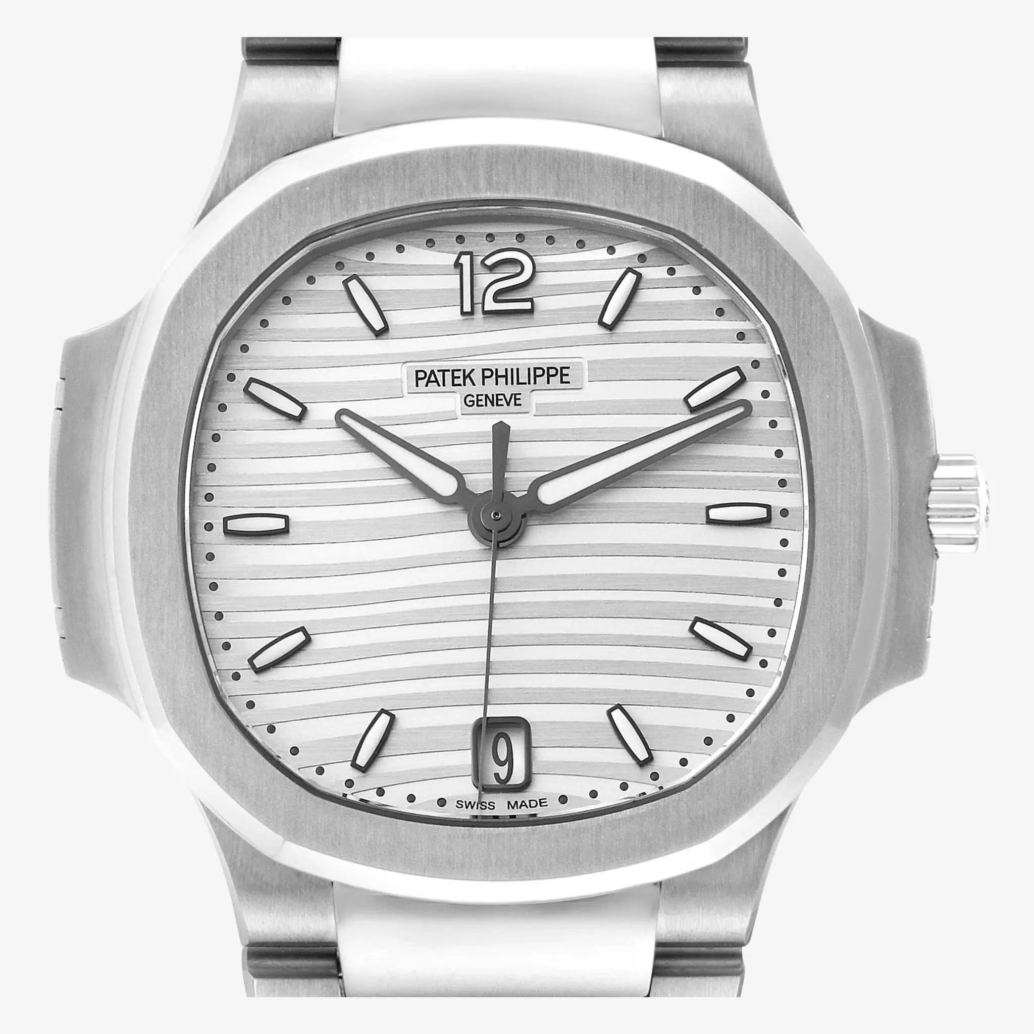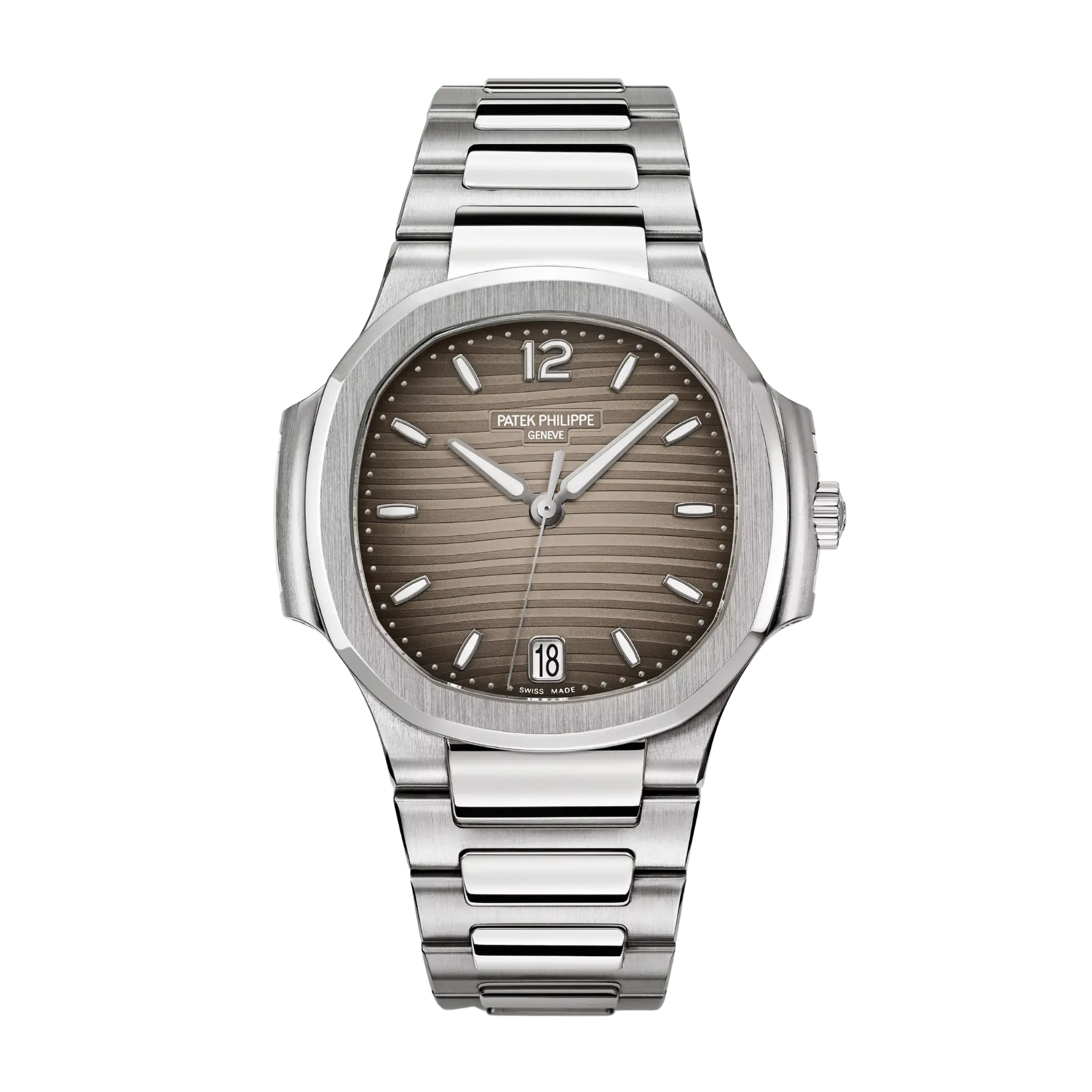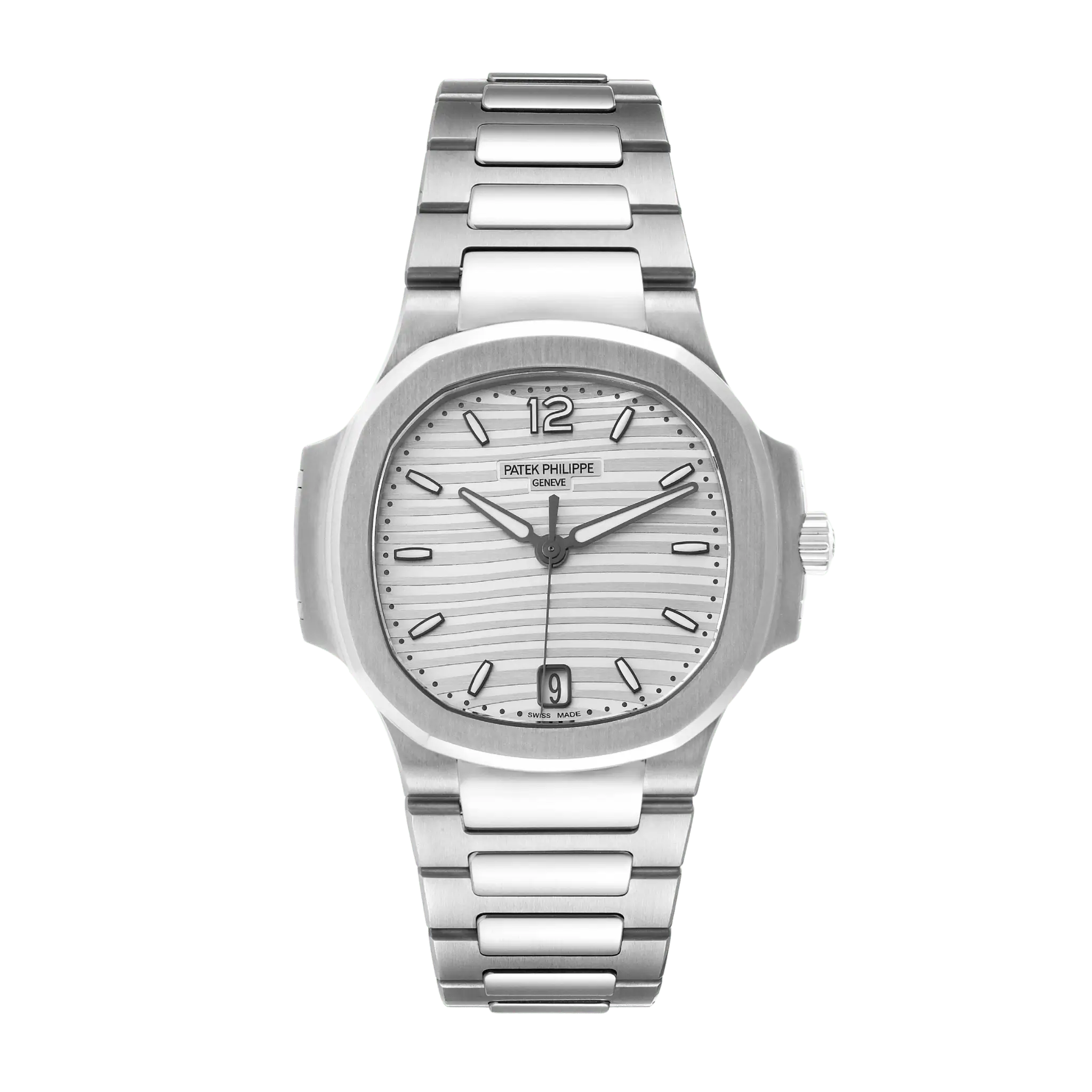 Elevate your style with the Patek Philippe Nautilus 7118, a masterpiece of elegance and precision. This women’s watch features a 35.2mm stainless steel case with a distinctive Nautilus design, complemented by a sophisticated grey dial with a textured wave pattern. The in-house Cal.324SC movement ensures accuracy, while luminescent hands and markers provide readability in any light. Perfect for the discerning professional, this timepiece blends luxury with functionality.
