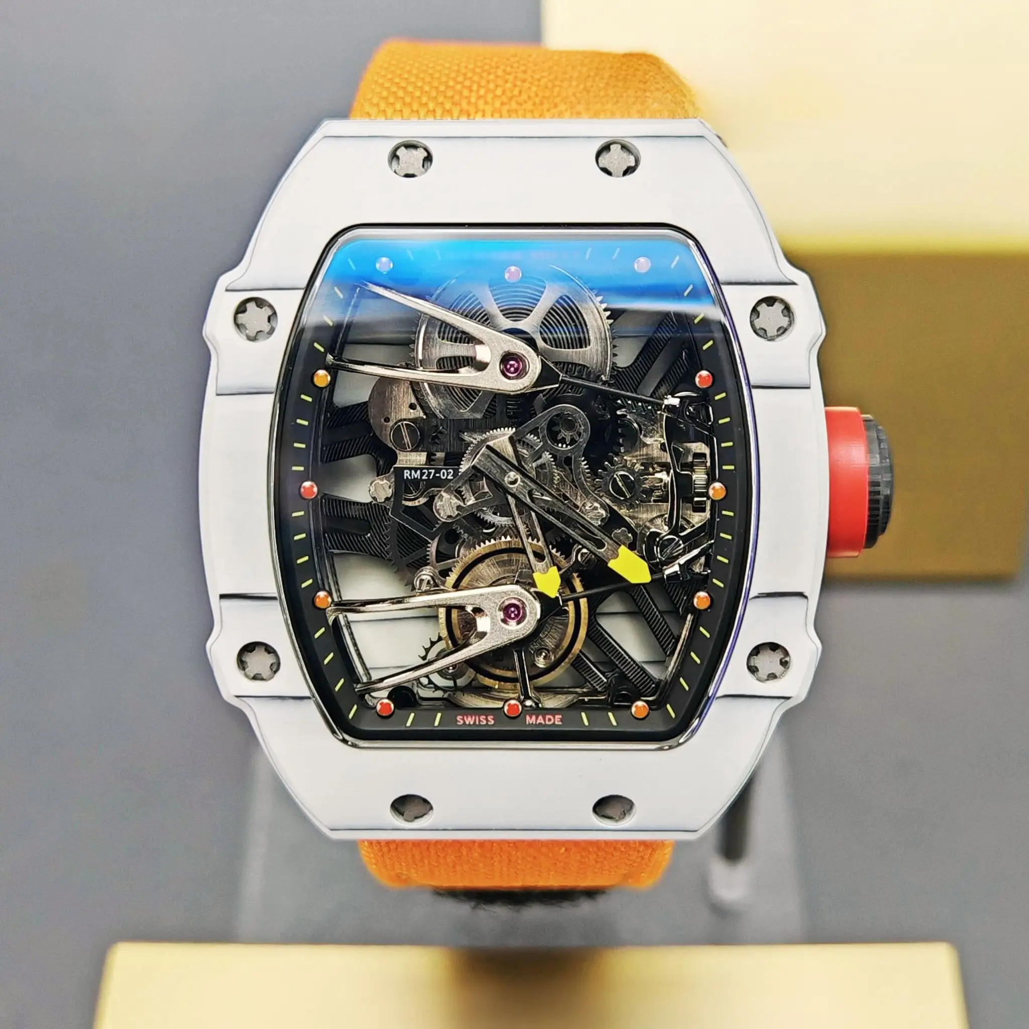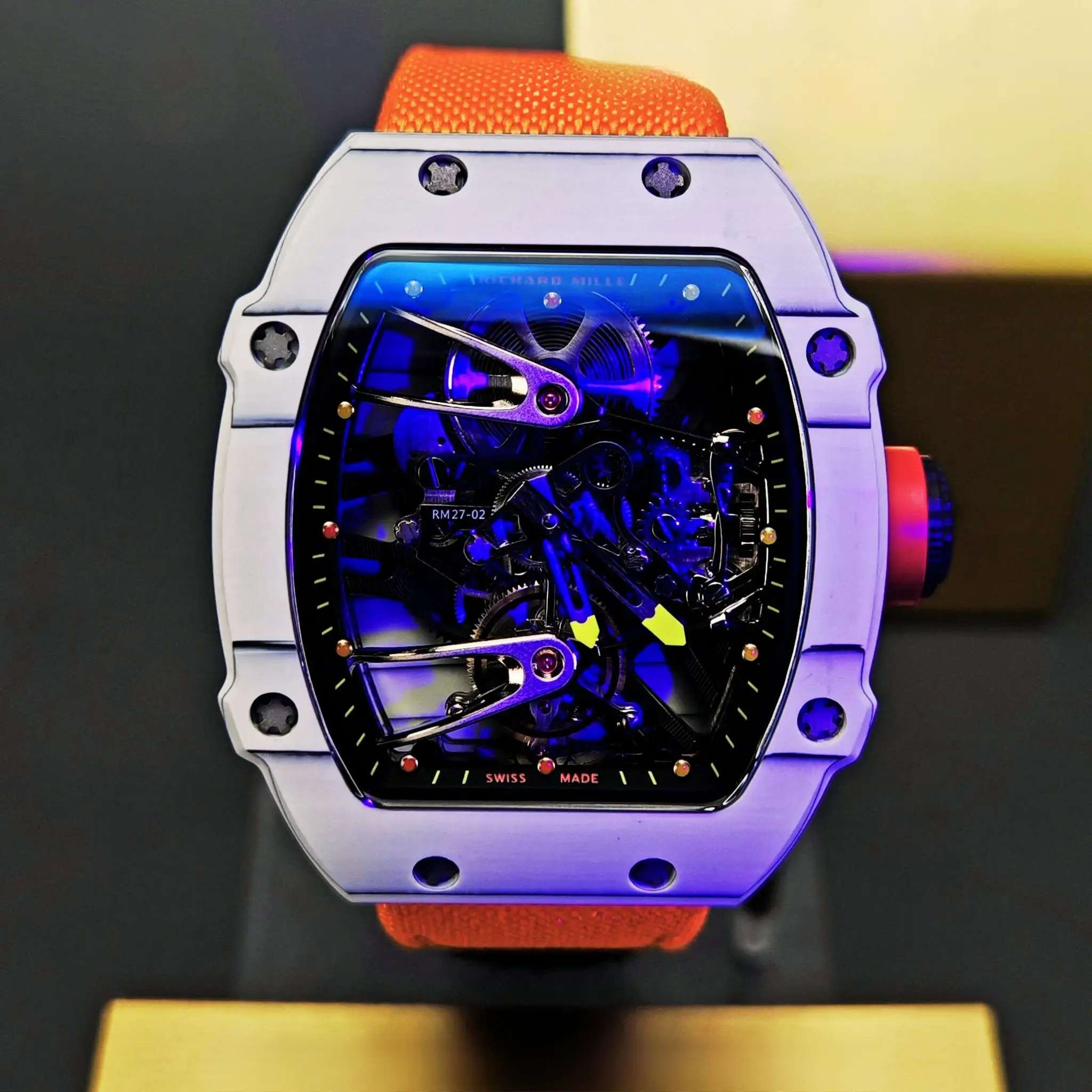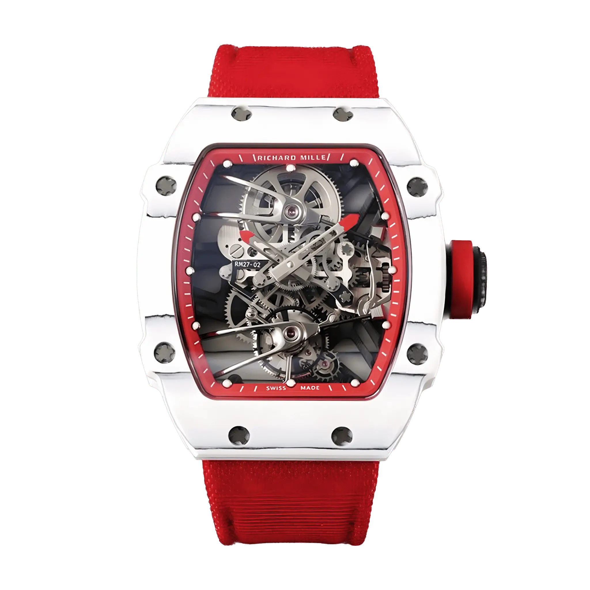 • The Richard Mille RM27-02 Tourbillon Red Strap Replica is an audacious blend of cutting-edge horology and uncompromising performance. Inspired by the demands of elite athletes and the precision of modern engineering, this 1:1 Swiss replica delivers an exceptional wearing experience that mirrors the original RM27-02 in every critical detail—down to its bold aesthetic and flawless mechanical execution.