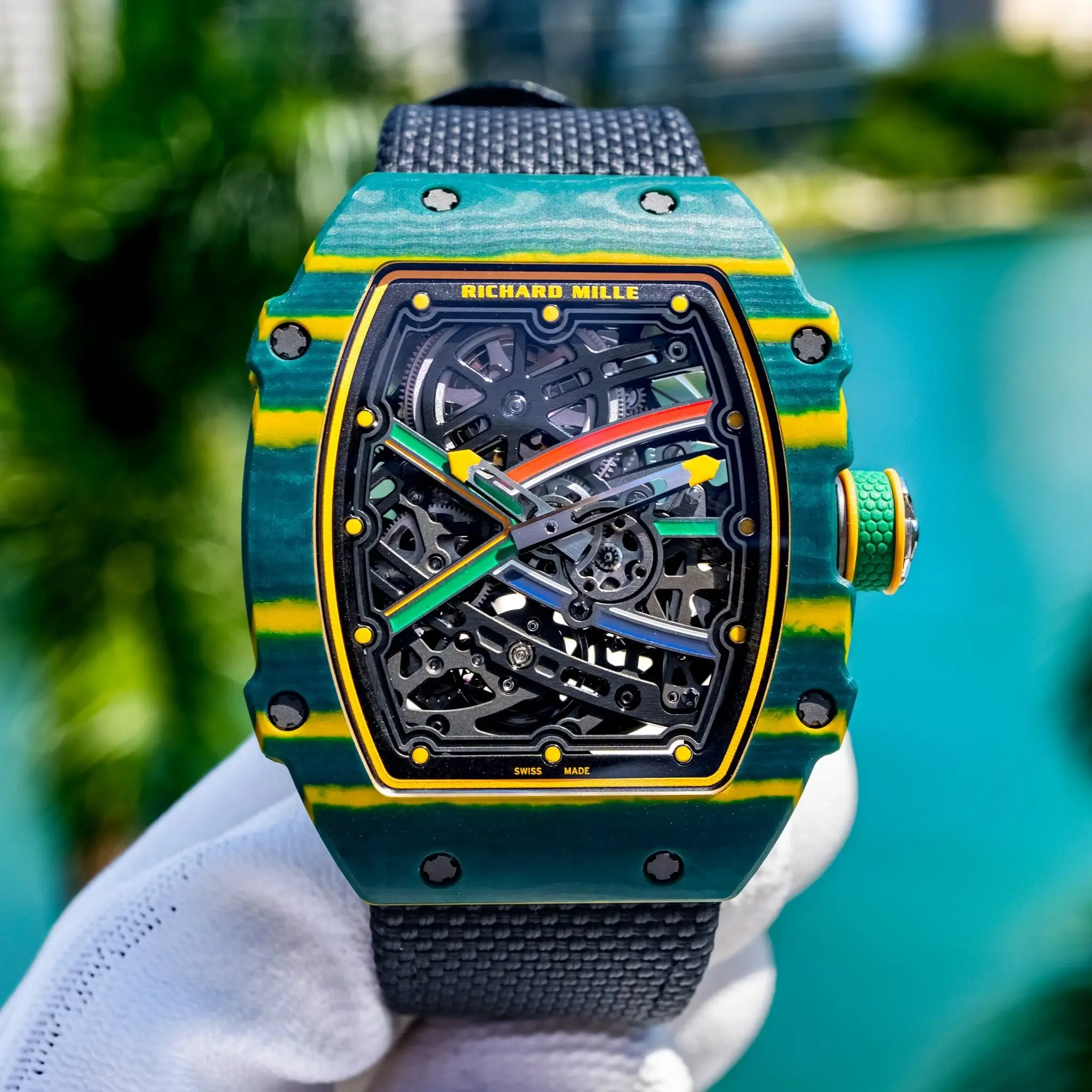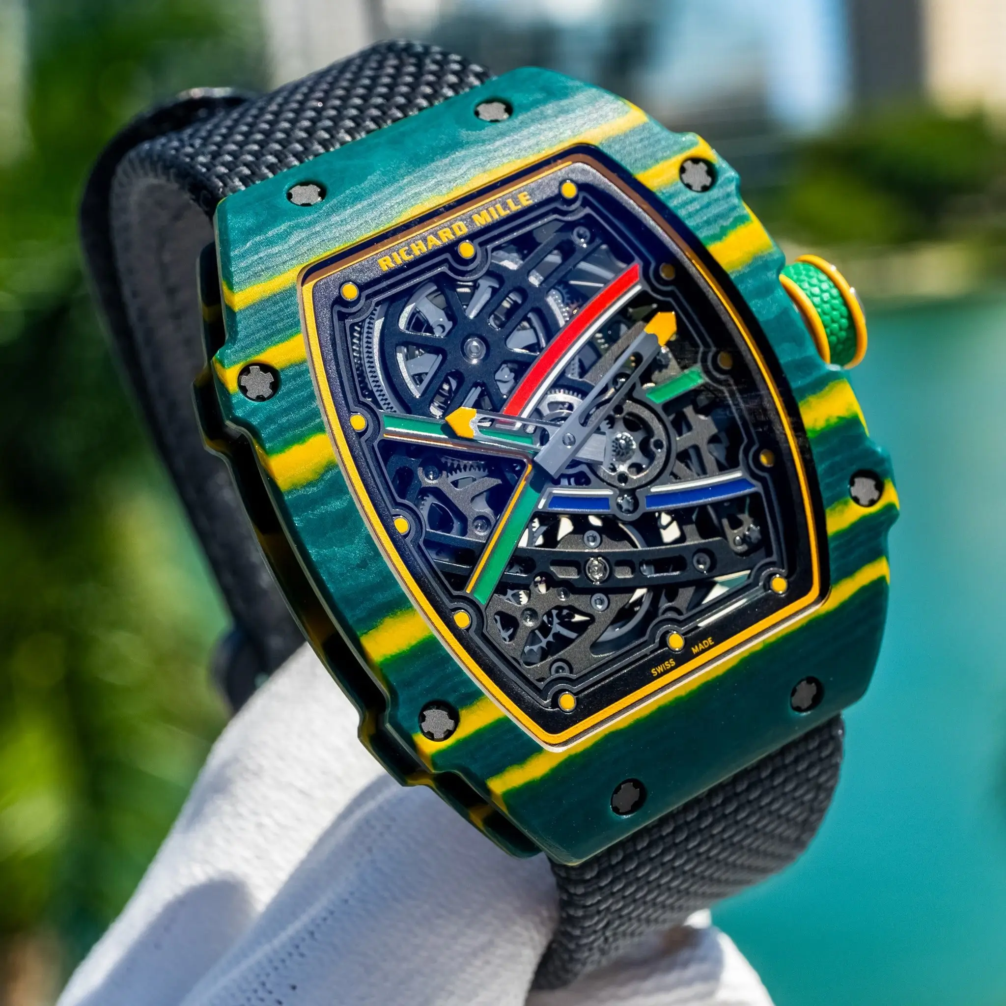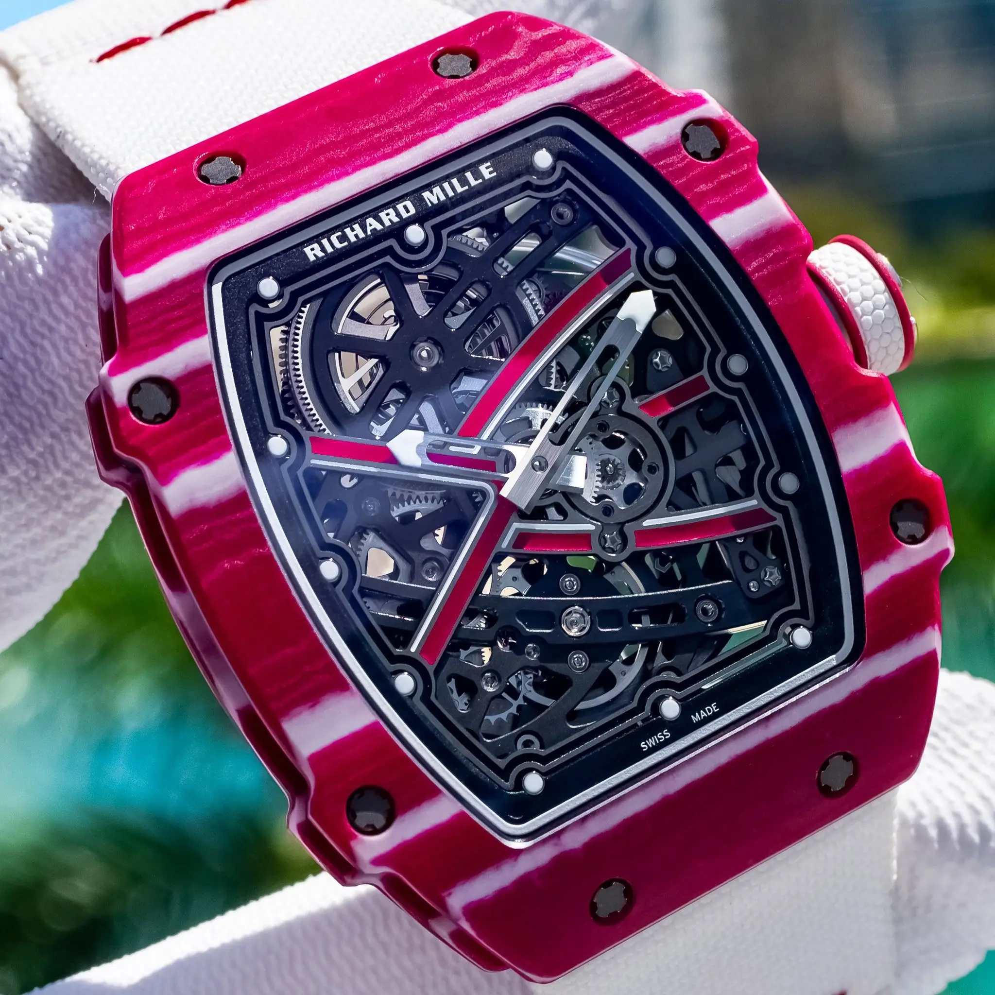 • ntroducing the Richard Mille RM 67-02 Skeleton Dial Alexis Pinturault, a watch that epitomizes cutting-edge design, technical mastery, and the spirit of athletic performance. Designed in collaboration with Olympic skier Alexis Pinturault, this timepiece reflects his dynamic, high-energy style and the unparalleled craftsmanship of Richard Mille.