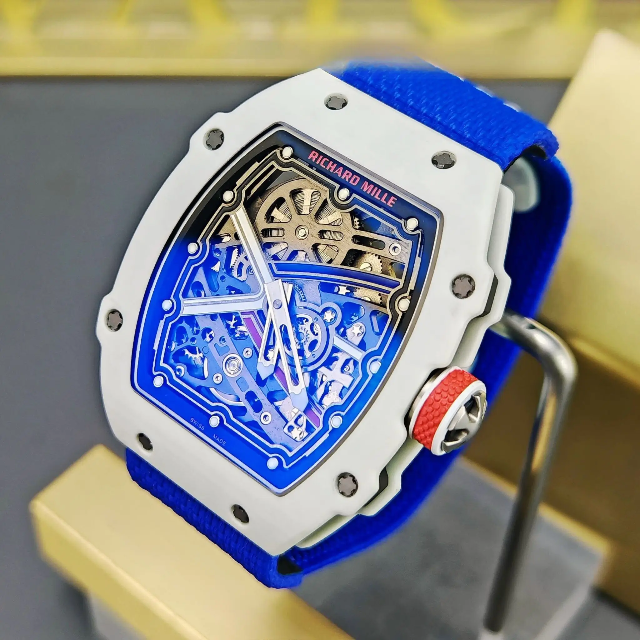 • The case, measuring 38.7 mm by 47.52 mm, is crafted from Richard Mille’s signature materials, Quartz TPT® and Carbon TPT®. These high-tech composites not only contribute to the watch’s featherweight feel but also offer superior resistance to shocks, scratches, and extreme conditions—qualities essential for high-performance athletes like Pinturault.