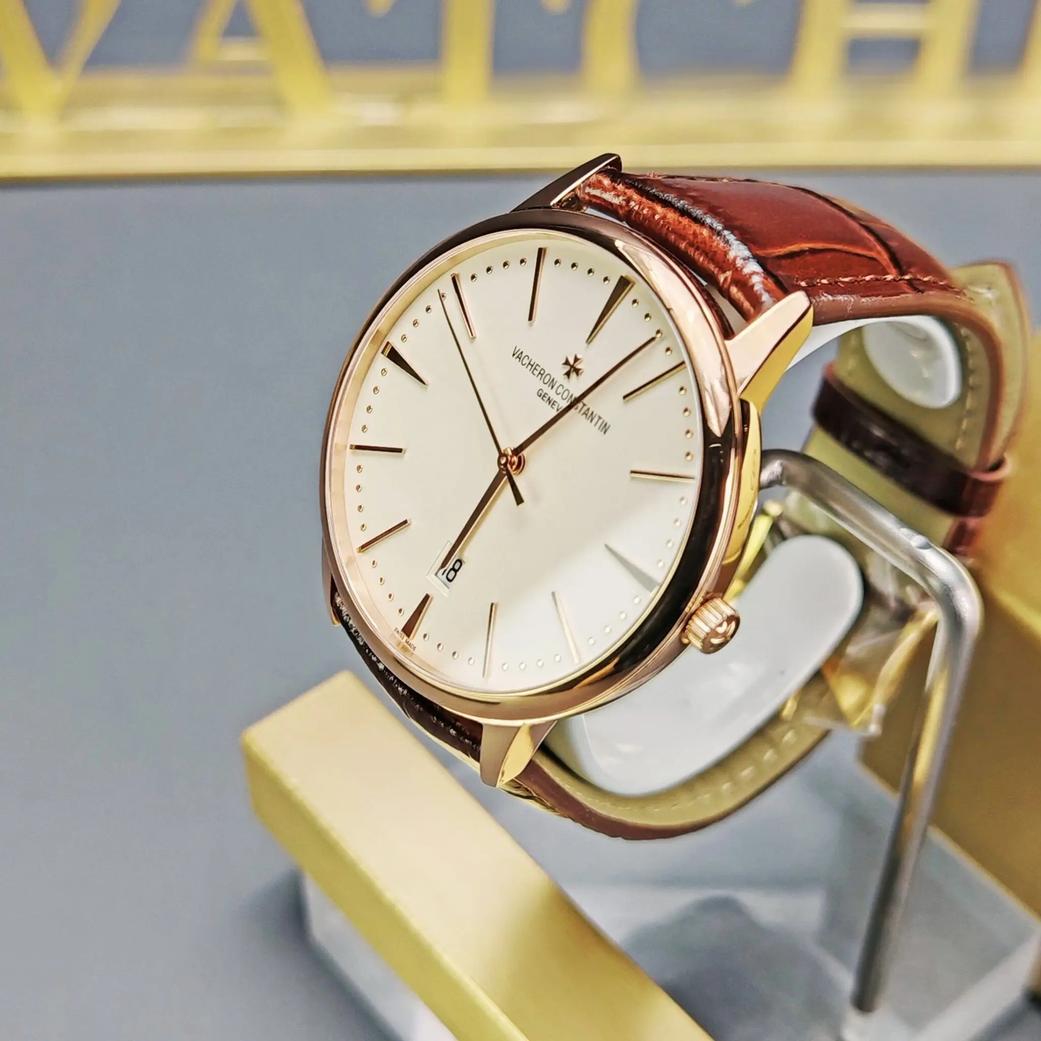 - Band Material: Leather.Leather band has become synonymous with steady and grace.